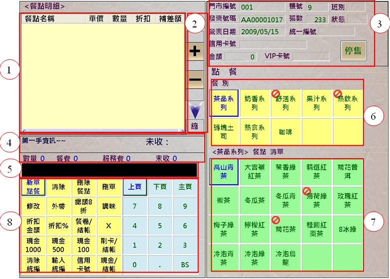 餐飲POS系統的主要核心部分。方便快速的點菜流程,簡易上手的點菜畫面,以及完整的點菜功能。讓操作者得心應手。其中包括點菜、退菜、現金、餐卷、刷卡等常見功能。