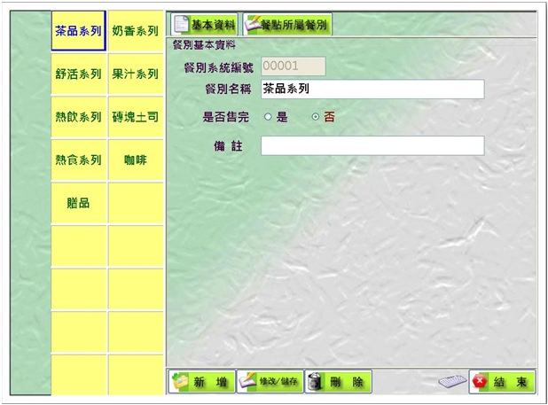 在系統設定畫面中,點選該功能設定連接至此畫面,可依使用者需求增減、修改餐點內容。